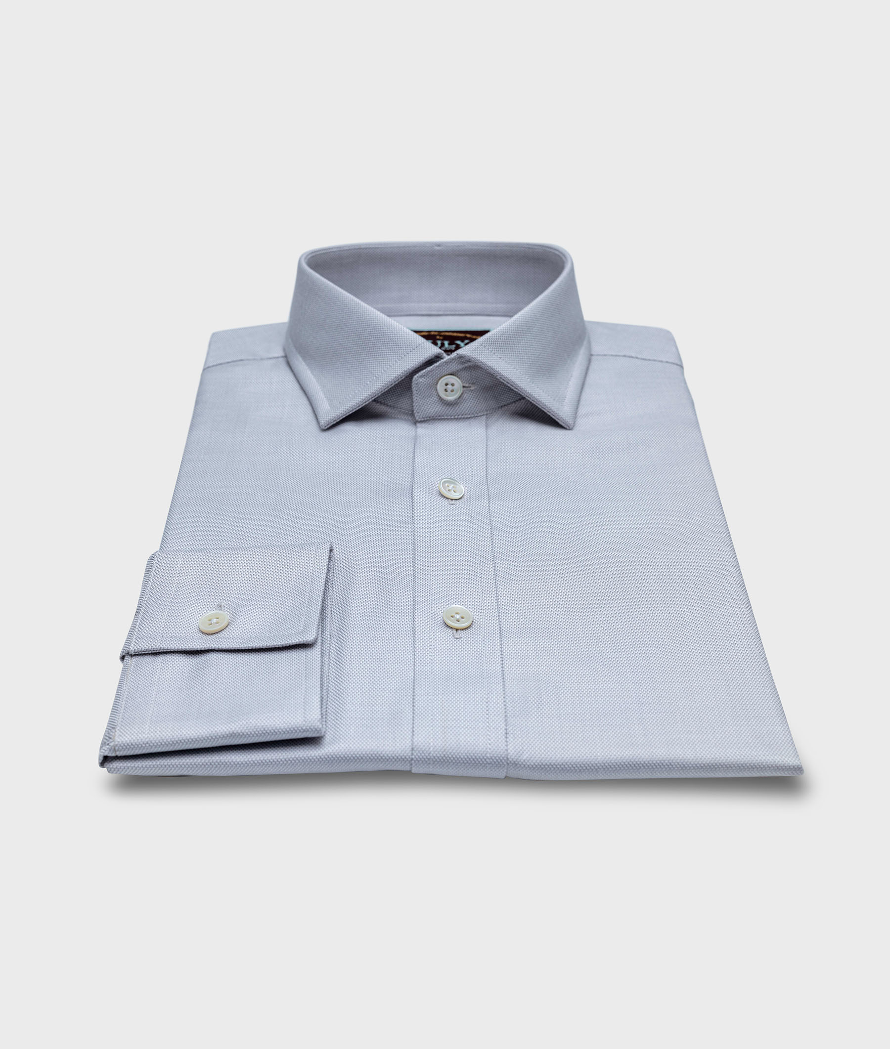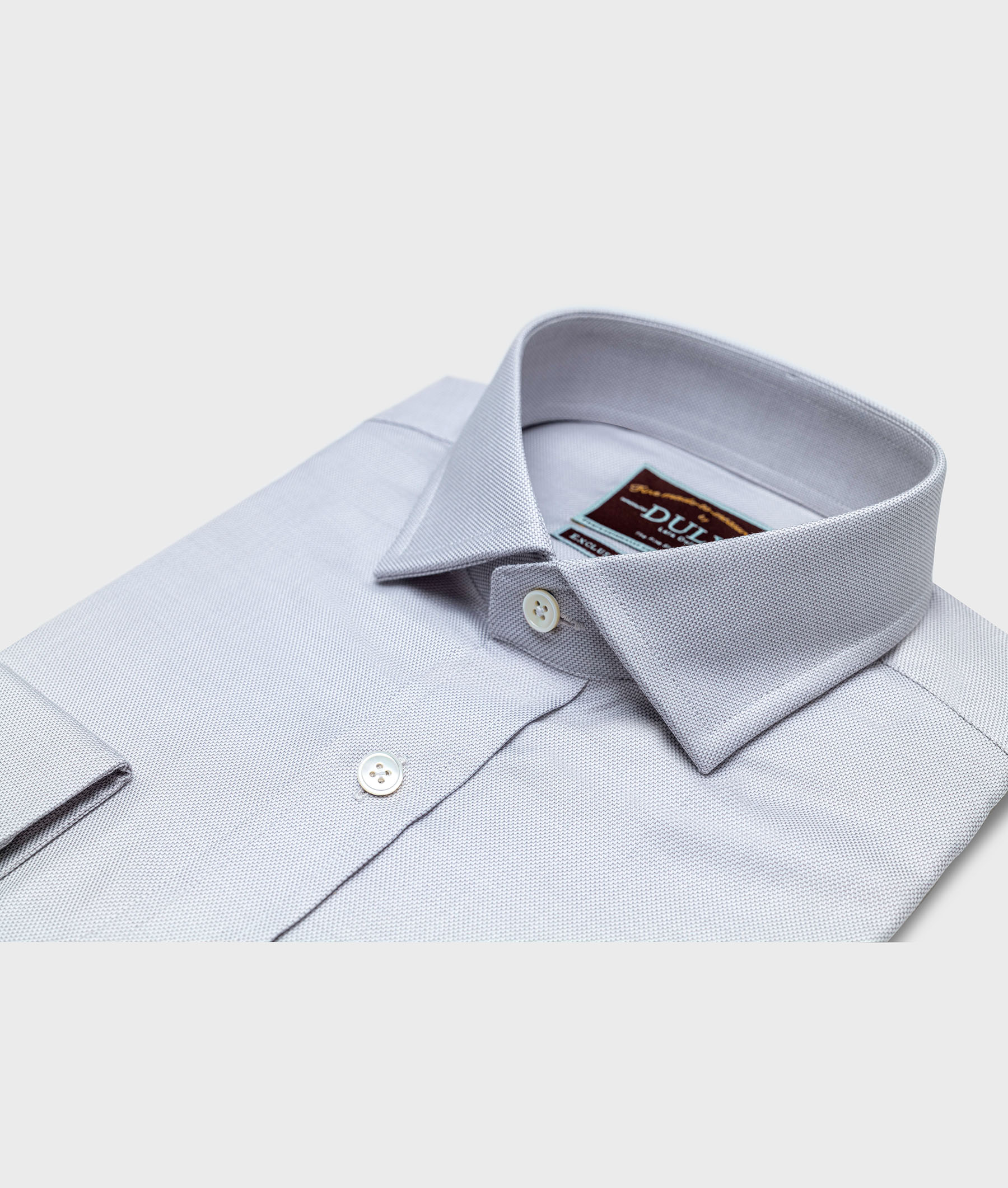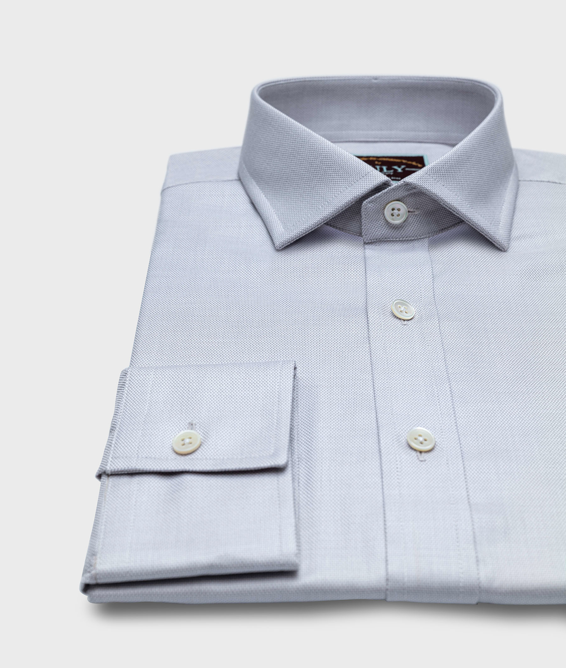Pinpoint Grey / Spread Collar / White Mother of Pearl