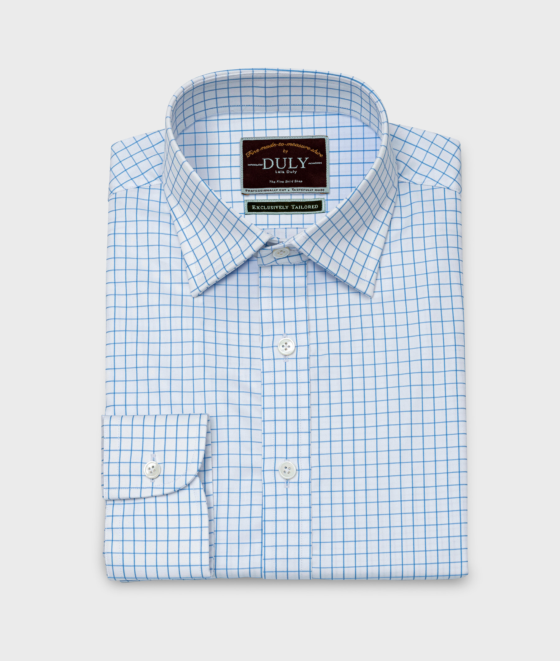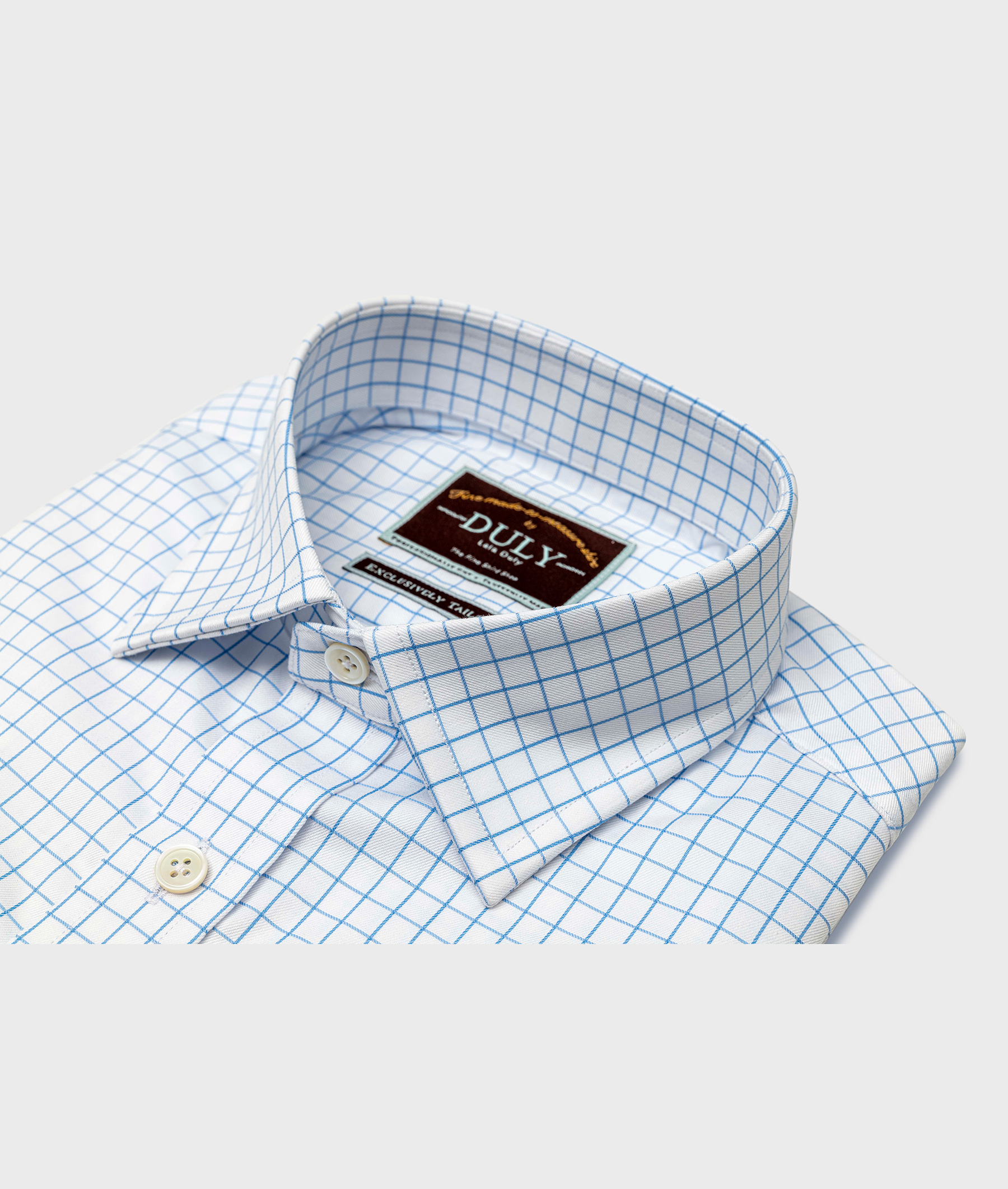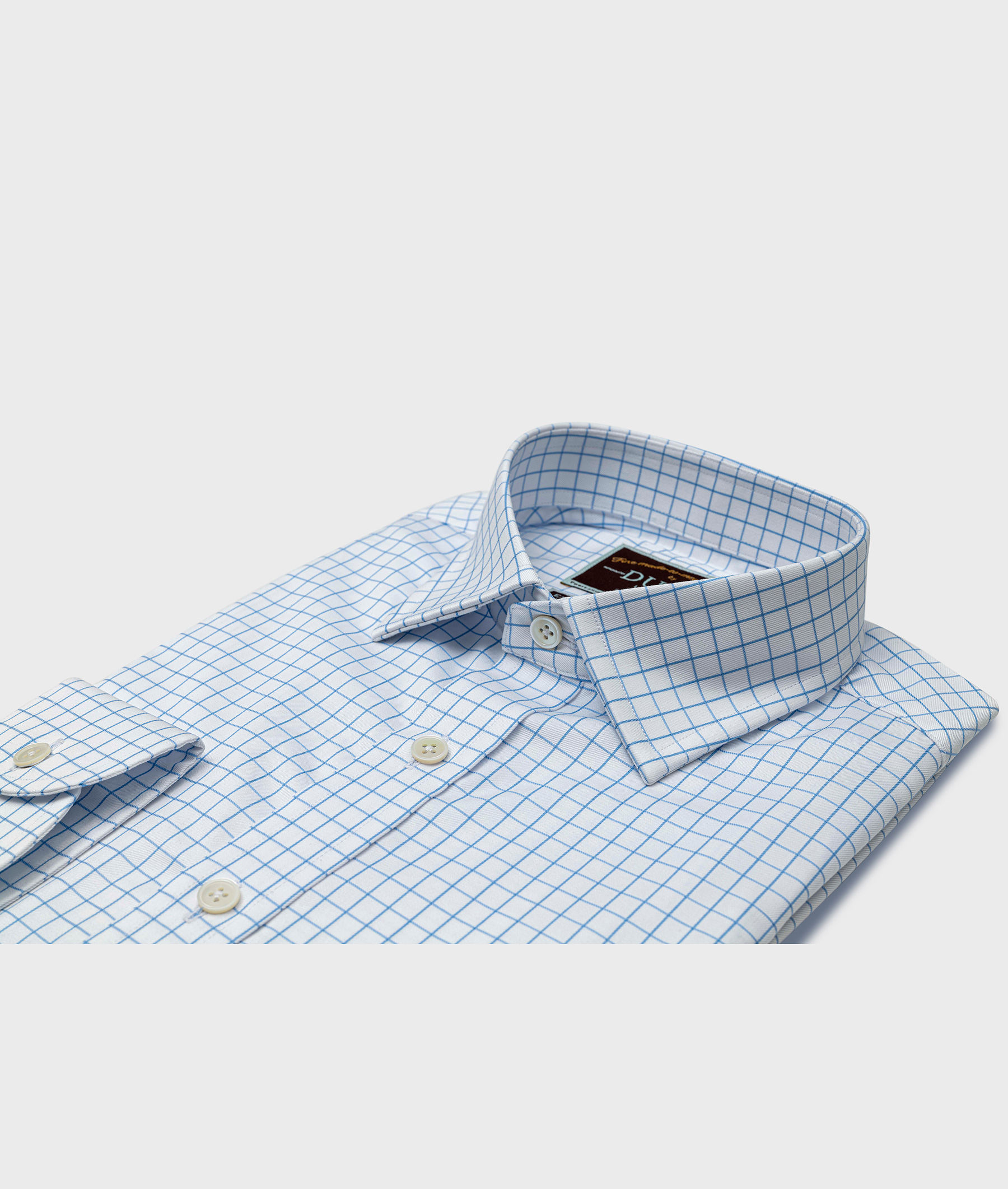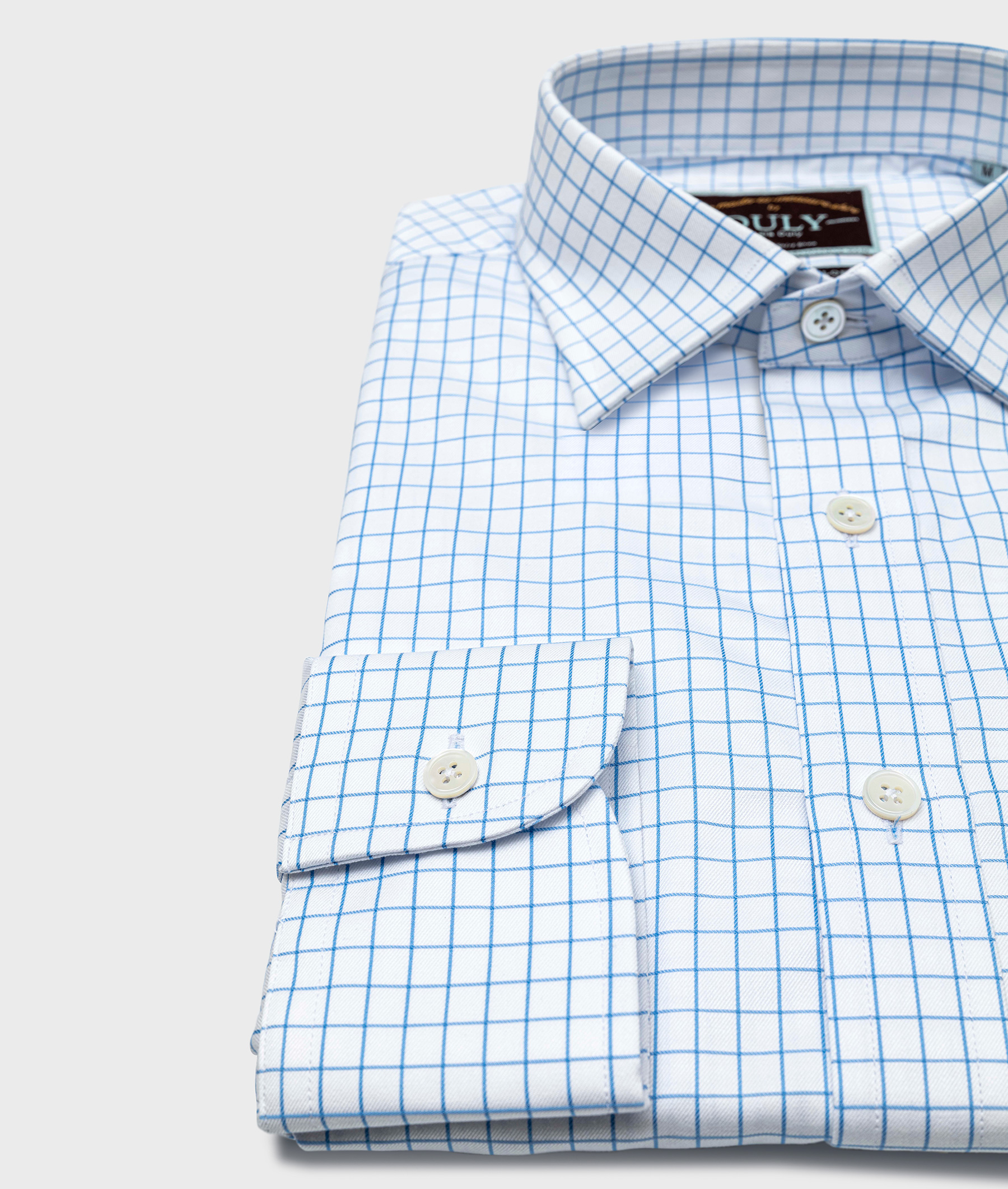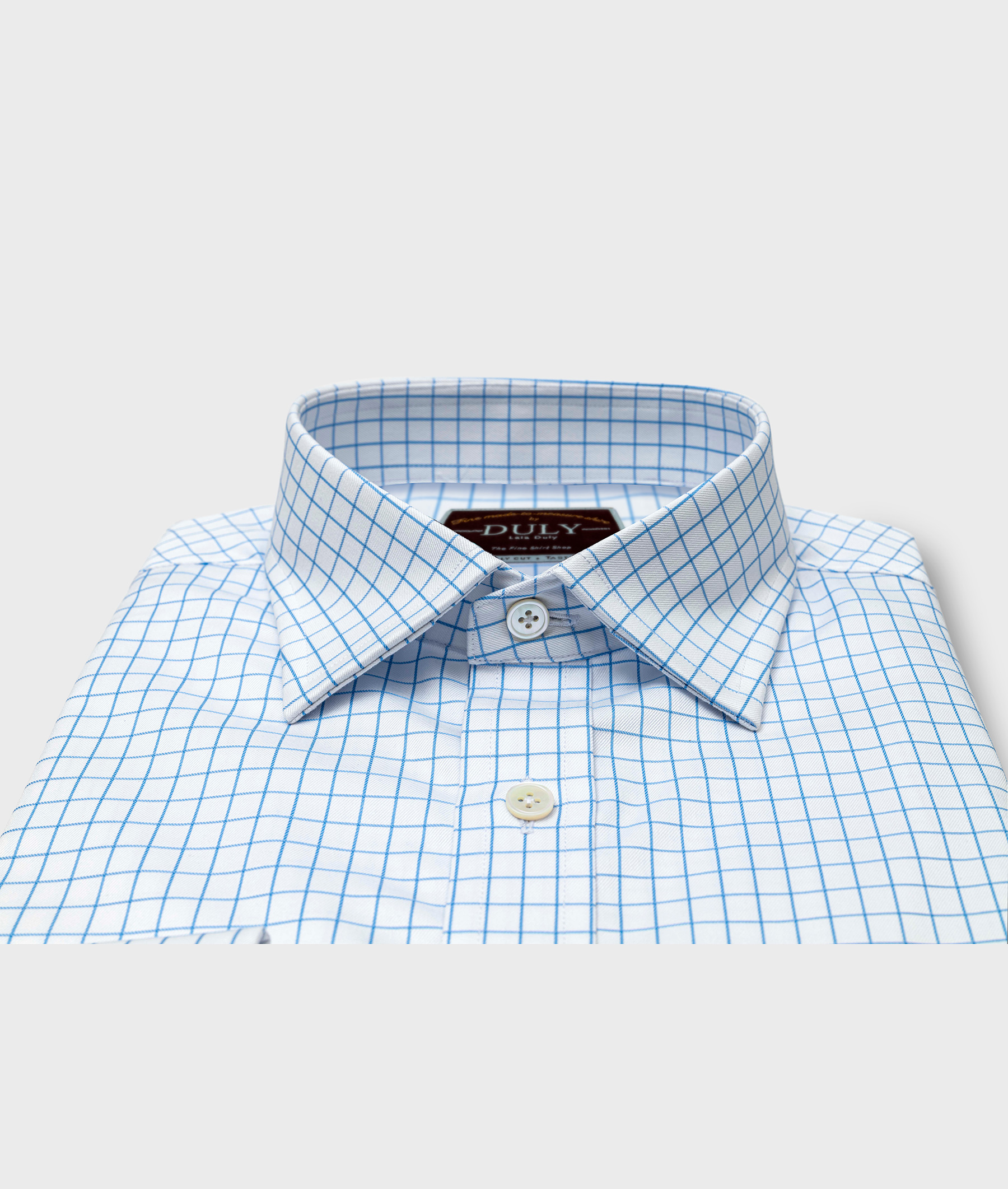 Twill Blue & White Checks / Spread Collar / White Mother of Pearl